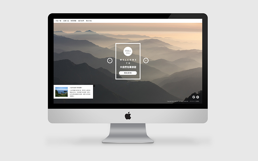 多數的旅遊網站設計著重在進入時的廣告宣傳,而忘了讓訪客們能勾起心中美好旅程的畫面,透過與業主的溝通,將台灣好山好水用一幅幅美麗的畫面,將南投日月潭、嘉義阿里山、台中秋虹谷、高雄愛河..等,設計在進入網站的一開始,以網站作為起點,開啟來訪者心中那個美好的畫面。